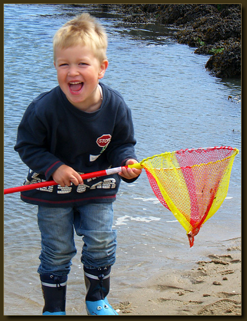 Unser Sohnemann hat das Strandkrabbenfischen wirklich drauf. Seine Ausbeute lag deutlich über 50% – und das obwohl die Viecher ziemlich flink sind (und aufgrund der Lichtbrechung auch noch schwer zu lokalisieren).