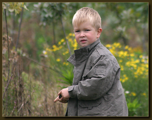 @Herr Schmidt: Der Jung‘ macht da Geocaching und ist von seinem Fund, auf den er zeigt, alles andere als begeistert! ,-)