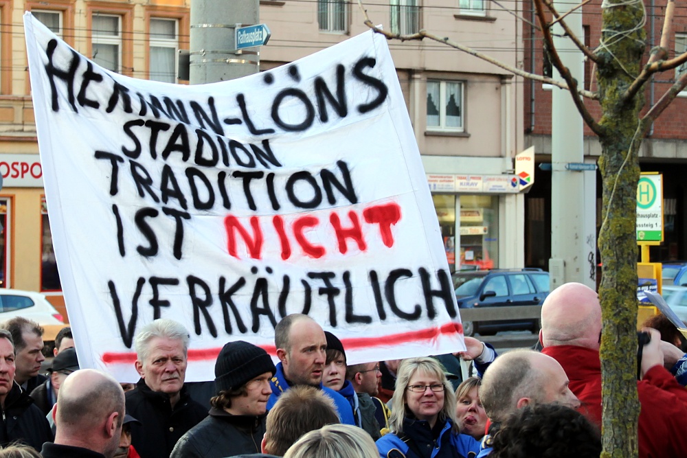 Demonstration gegen die Vermarktung des Stadiongeländes am Hermann-Löns-Weg