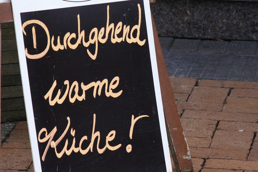 Was interessiert es mich als Gast, ob der Koch es schön mollig hat? Besser wäre doch „Durchgehend warme Speisen!“ oder „Durchgehend heißer Kaffee!“ oder so.